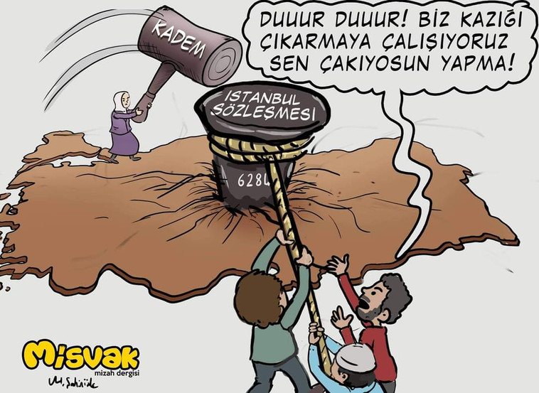 İktidarın gerçek derdini, sözleşmeden çıkılacağını 45 dakika önce duyuran Misvak dergisi karikatürlerinden görebiliyoruz.